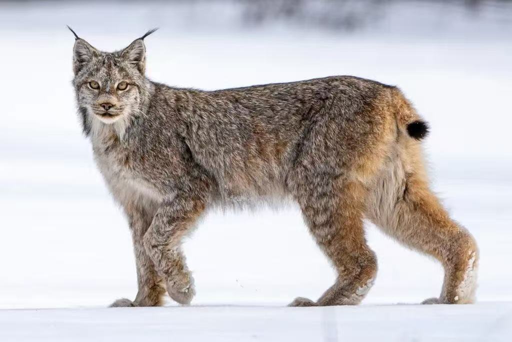 食性特点:极度偏爱雪鞋兔,食谱中兔子占比最高可达 97%,种群数量与雪鞋兔呈十年周期波动,是典型的生态依存关系。