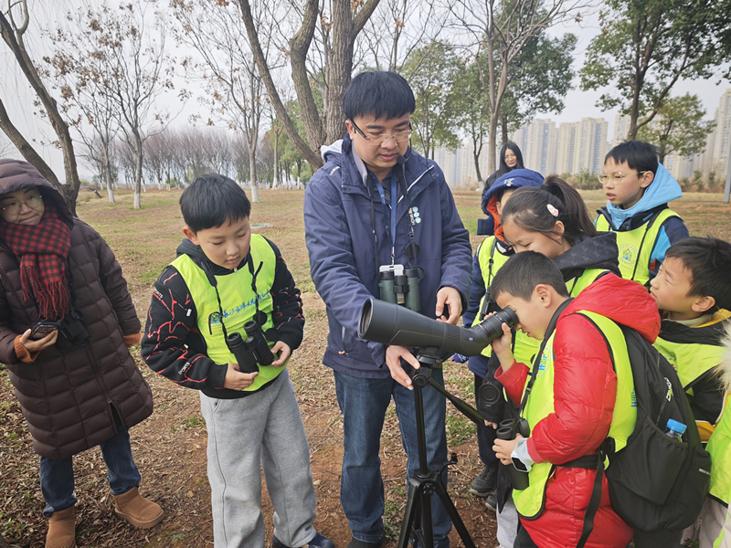 洋湖湿地作为中南地区规模最大的城市湿地,经过多年生态修复,已成为候鸟南迁途中的重要“生态驿站”,有300余种鸟类在此栖息繁衍。活动现场,洋湖湿地科普馆馆长胡景翔化身研学导师,围绕“候鸟科普+湿地生态保护”,设计科普馆沉浸式讲解、观鸟设备实操、户外候鸟观察、生态保护宣讲等教学环节,向孩子们生动阐释湿地是“地球之肾”的核心生态功能,解锁候鸟迁徙的科学奥秘。