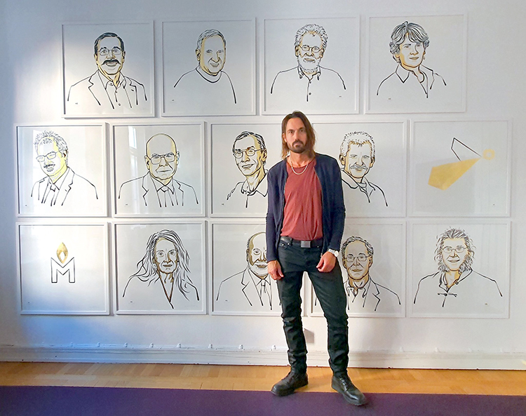 画像取代照片,由此做到了视觉风格的统一,同时兼具艺术表达:以卡通或现代艺术风格呈现,突出了获奖者的人文精神,与普通严肃照片的刻板印象形成了鲜明反差。同时得益于尼克拉斯的精湛画技,寥寥数笔,就凸显出了各奖项得主专业与性格的差异,而且尼克拉斯还时不时在画作中融入一些小彩蛋,增加了趣味性。