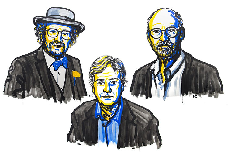 2017年度诺贝尔生理学或医学奖得主Jeffrey Hall、Michael Rosbash和Michael Young,图片来源:Current Exchange