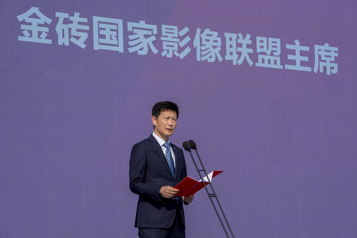 2025年11月16日,中国摄影家协会主席、金砖国家影像联盟主席李舸在中国·张家界第三届世界遗产摄影大展开幕式上致辞。徐迅 摄