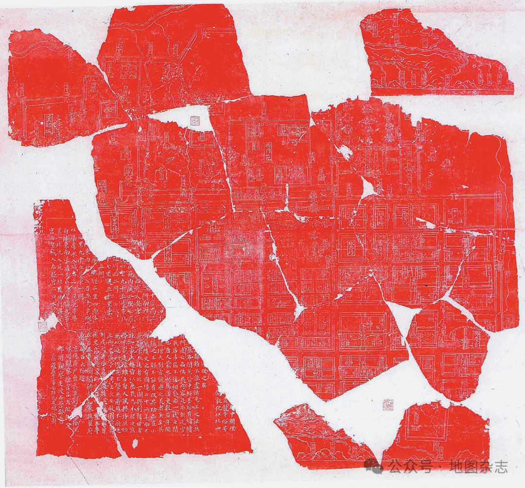 根据现有资料,《长安图碑》自北宋刻成后,最初立于京兆府衙署内,此后“命途多舛”,金末战乱后不知所终。对此,元代李好文在《长安志图》跋语中有言:“此图旧有碑刻,在京兆府公署,兵后失之。有雷德元、完颜椿者访得碑本,订补复完,命工锓梓,附于长安志后。”不过庆幸的是,《长安图碑》的残石在清末民国时期陆续出土,共发现二十余片,虽勉强拼合,但无法合为整幅地图。经细心连缀,《长安图碑》残石以深埋之法展出,现藏西安碑林博物馆。