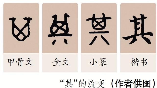 “其”后来借用为代词,读作qí,比如“其貌不扬”。也可以用作后缀,附在某些词的后面,构成副词,比如“极其”“尤其”。