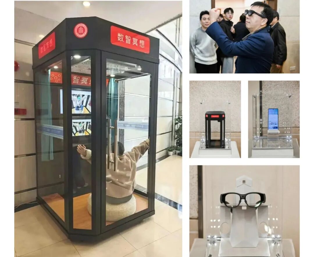 据介绍,AI数智冥想系统的研发亮点在于通过“用AI理解情绪、用数据指导练习、用反馈驱动行为”的核心思路,实现从感知、训练到调节的闭环式干预。AI数智冥想系统采用“一套系统+三种产品形态”的立体布局:移动端APP用于伴随式训练,可识别冥想前状态、匹配节奏并生成个体化建议;AR冥想眼镜以沉浸式视觉与多模态信号联动,提升入静效率与专注体验;AI数智微厅以小型舱体承载采集、反馈与隐私空间,实现“即用即走”的沉浸训练,可部署于学校、社区、企业、医疗康养与公共服务场景,覆盖不同人群与需求。