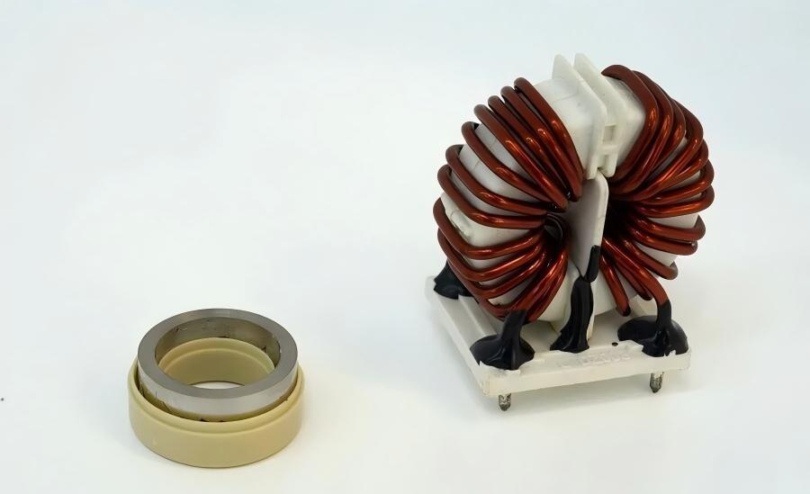 高频软磁纳米晶合金带材及其应用的车载共模电感。